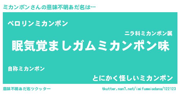 | 女子向けラノベタイトル風あだ名 | 『ミカンポン恋絵巻』 |