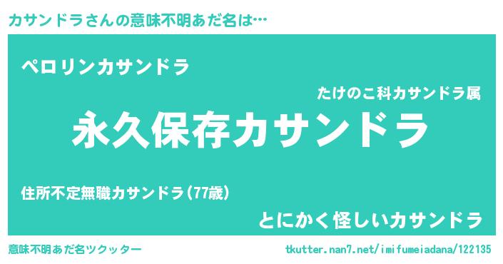 | 男性向けラノベタイトル風あだ名 | 『カサンドラという概念が存在しない退屈な世界 』 |