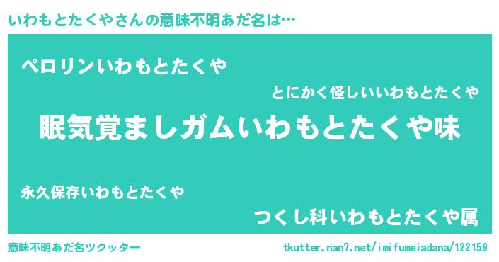 | 胡散臭い通販商品みたいなあだ名 | 『100人中100人が認めたイリジウム磁石…その名も「いわもとたくや」』 |