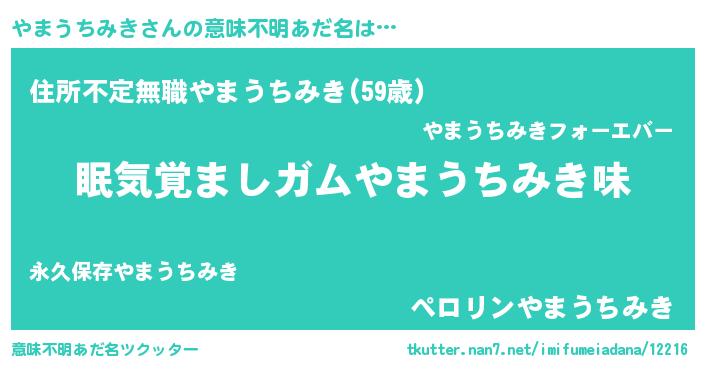 | 男性向けラノベタイトル風あだ名 | 『おまえをオタクにしてやるから、俺をやまうちみきにしてくれ! 』 |