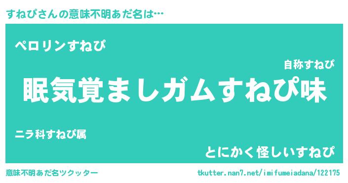| ヒーロー風カッコイイあだ名 | 『正義の使者すねぴ』『スーパースネピ』 |