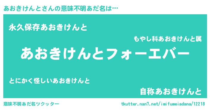 | ファンタジー風あだ名 | 『エターナルアオキケントー』 |