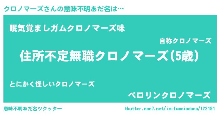 | 胡散臭い通販商品みたいなあだ名 | 『あなたにだけ特別に提供する100年もののヴィンテージワイン…その名も「クロノマーズ」』 |