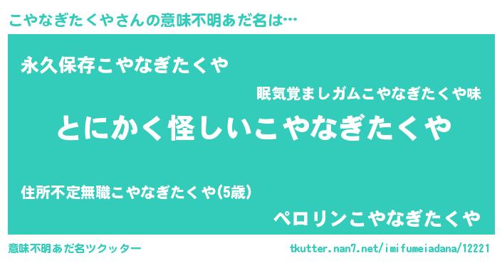 | 料理風あだ名 | 『こやなぎたくやの豆乳スープ』 |