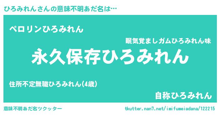 | 男性向けラノベタイトル風あだ名 | 『うちのひろみれんが世界を掌握している!』 |