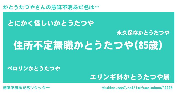 | 男性向けラノベタイトル風あだ名 | 『この素晴らしい世界にかとうたつやを!』 |