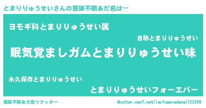 | 女子向けラノベタイトル風あだ名 | 『とまりりゅうせい恋絵巻』 |