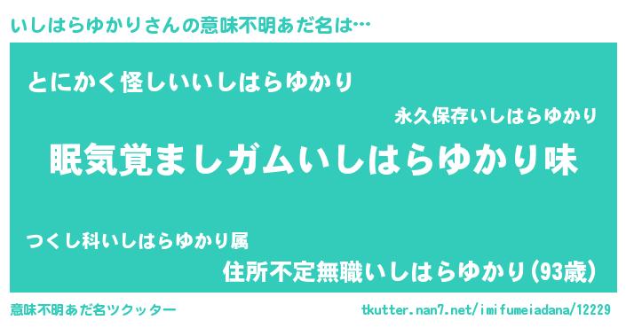 | 胡散臭い通販商品みたいなあだ名 | 『100人中100人が認めたイリジウム磁石…その名も「いしはらゆかり」』 |