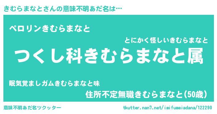 | 男性向けラノベタイトル風あだ名 | 『きむらまなと~年齢イコール彼女いない歴の魔法使い~』 |