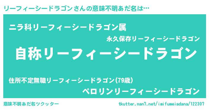 | 恥ずかしいあだ名 | 『リーフィーシードラゴンデラックス』 |