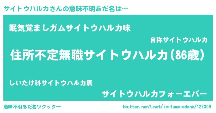 | 料理風あだ名 | 『サイトウハルカのカルパッチョ風』 |
