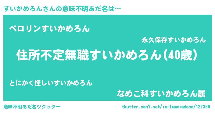 | 男性向けラノベタイトル風あだ名 | 『この素晴らしい世界にすいかめろんを!』 |