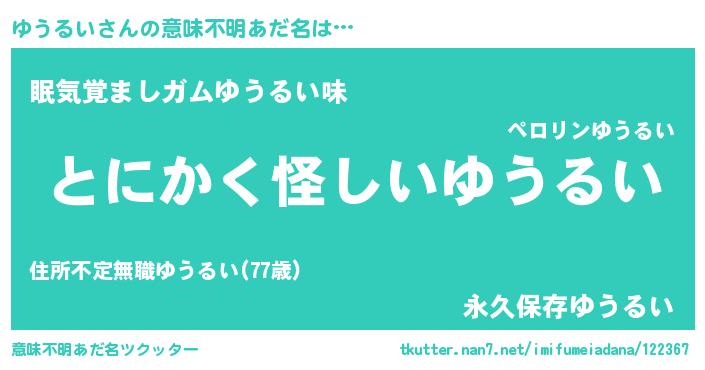 男性向けラノベタイトル風あだ名 | 『ゆうるいの嫁は女の子じゃないと思った?』 |