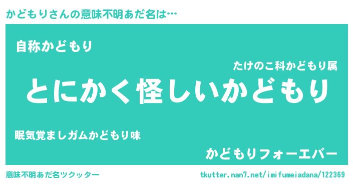 | 男性向けラノベタイトル風あだ名 | 『かどもりの嫁は女の子じゃないと思った?』 |