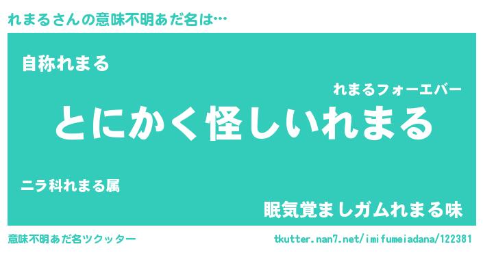 | ヘコむあだ名 | 『れまっぺ』『つくし』『れまる(笑)』 |
