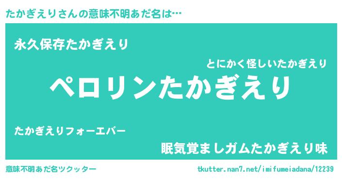 | 胡散臭い通販商品みたいなあだ名 | 『億万長者になれるブレスレット…その名も「たかぎえり」』 |