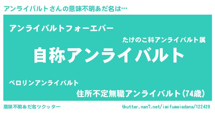 | 女子向けラノベタイトル風あだ名 | 『アンライバルトなんてお断りですっ。』 |