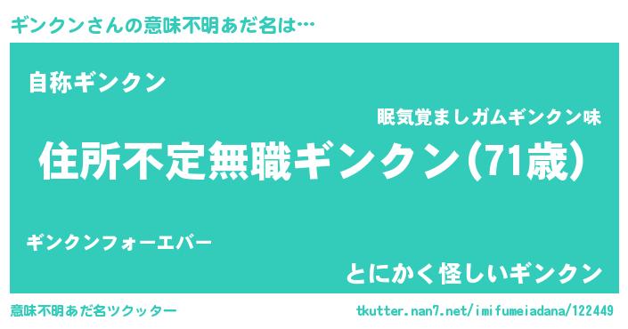 | 男性向けラノベタイトル風あだ名 | 『この素晴らしい世界にギンクンを!』 |