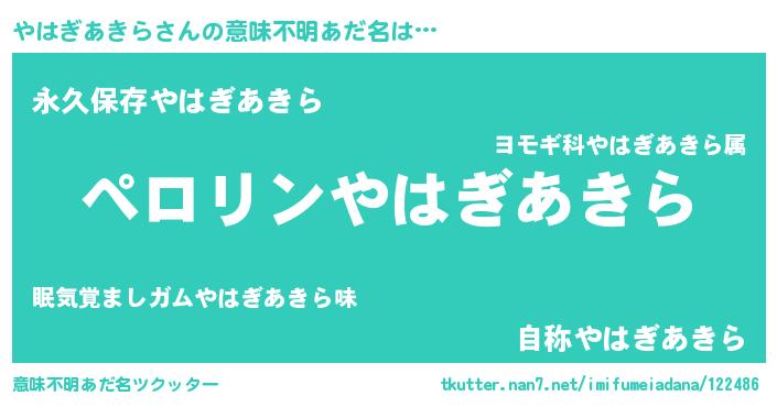 | 胡散臭い通販商品みたいなあだ名 | 『億万長者になれる水晶球…その名も「やはぎあきら」』 |