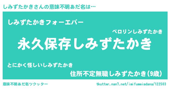 | 胡散臭い通販商品みたいなあだ名 | 『来世でも幸せになれる健康食品…その名も「しみずたかき」』 |
