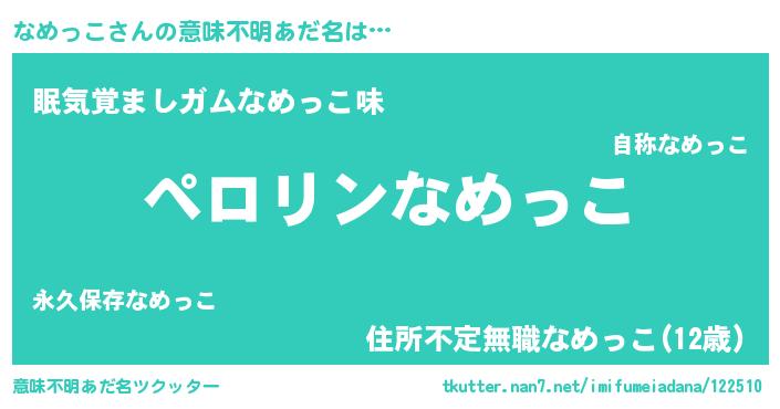 | 男性向けラノベタイトル風あだ名 | 『なめっこの憂鬱』『魔弾の王となめっこ』 |