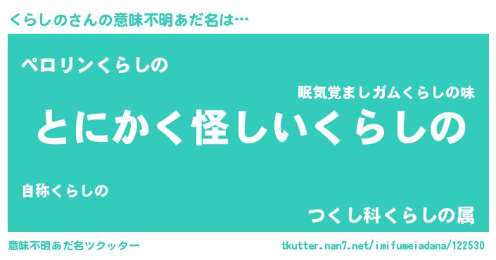 | 女子向けラノベタイトル風あだ名 | 『くらしのは平凡を望む』 |