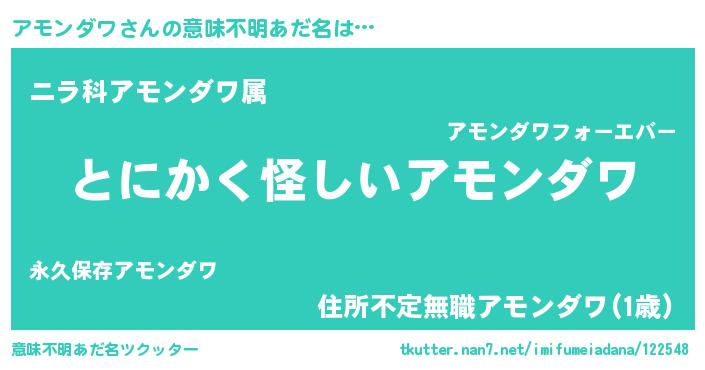 | 男性向けラノベタイトル風あだ名 | 『ダンジョンにアモンダワを求めるのは間違っているだろうか』 |