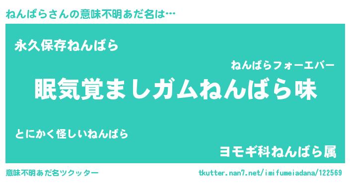 | ヒーロー風カッコイイあだ名 | 『慈愛の使者ねんばら』『ネオネンバラ』 |
