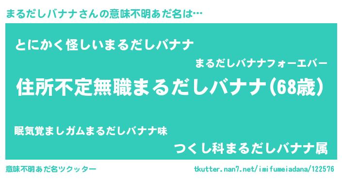 | 男性向けラノベタイトル風あだ名 | 『この素晴らしい世界にまるだしバナナを!』 |