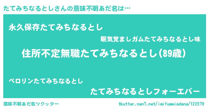 | 欧米人風あだ名 | 『ダレノガレたてみちなるとし』 |