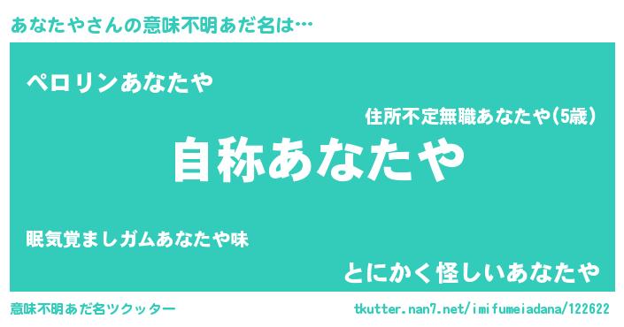 | ヒーロー風カッコイイあだ名 | 『ウルトラ戦士アナタヤ』『銀牙騎士アナ』 |