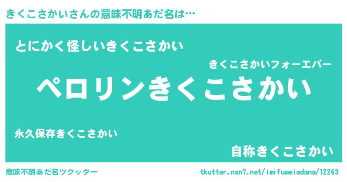 | 男性向けラノベタイトル風あだ名 | 『キクコサカイアートオンライン』 |
