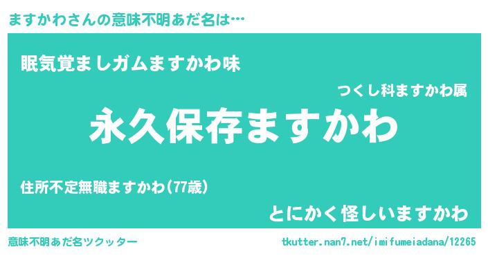 | ヘコむあだ名 | 『ますかわ(震え声)』『ますぷりん』 |