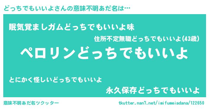 | 胡散臭い通販商品みたいなあだ名 | 『必ず成功するブレスレット…その名も「どっちでもいいよ」』 |