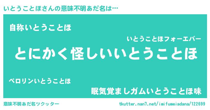 | ポケモン風あだ名 | 『ヒイトウコトホ』『イトセウス』 |