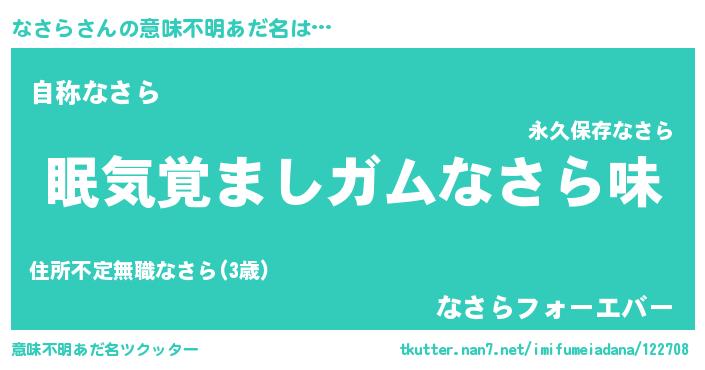 | ヒーロー風カッコイイあだ名 | 『愛の使者なさら』『究極戦士ナサラ』 |