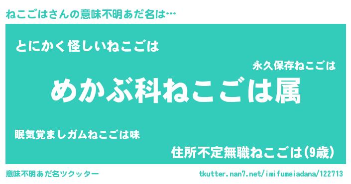| 欧米人風あだ名 | 『ねこごは・ステッグマイヤー』 |