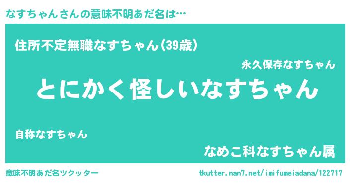 | 女子向けラノベタイトル風あだ名 | 『なすちゃんは平凡を望む』 |