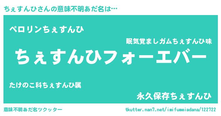 | 欧米人風あだ名 | 『ちぇすんひクリステル』 |