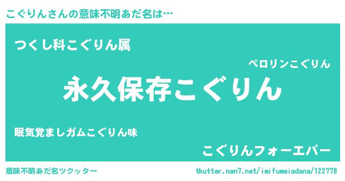 | ヒーロー風カッコイイあだ名 | 『ネオコグリン』『ウルトラこぐりんマン』 |