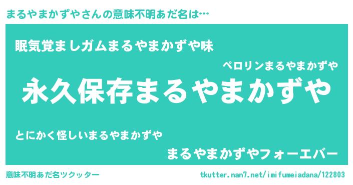 | 胡散臭い通販商品みたいなあだ名 | 『来世でも幸せになれる水素水…その名も「まるやまかずや」』 |
