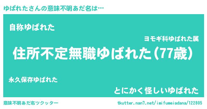 | 料理風あだ名 | 『ゆばれたのカルパッチョ風』 |