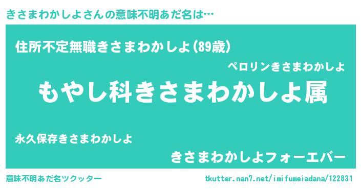 | 男性向けラノベタイトル風あだ名 | 『転生したらきさまわかしよだった件』 |