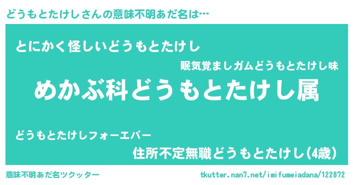 | ポケモン風あだ名 | 『ドウキング』『ヒドウモトタケシ』 |