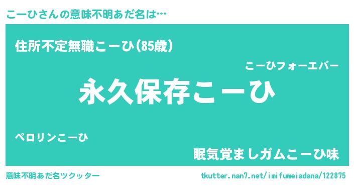 | ヘコむあだ名 | 『こーひ(笑)』『酢こんぶ』 |