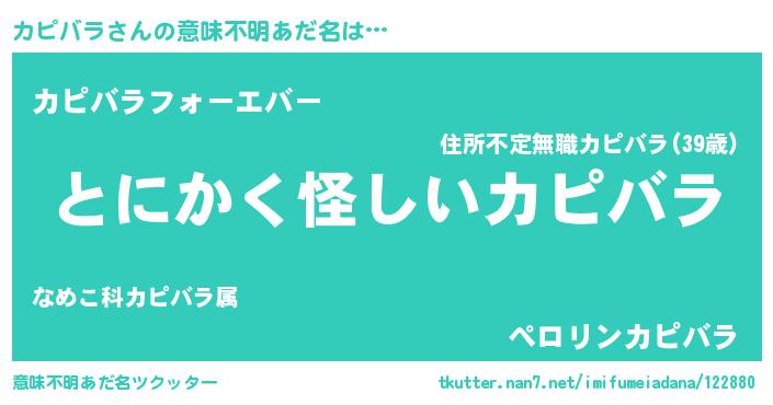 | ヒーロー風カッコイイあだ名 | 『幻影騎士カピ』『ウルトラカピバラマン』 |