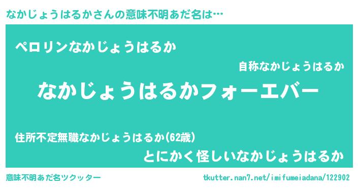 | 欧米人風あだ名 | 『なかじょうはるか・ステッグマイヤー』 |