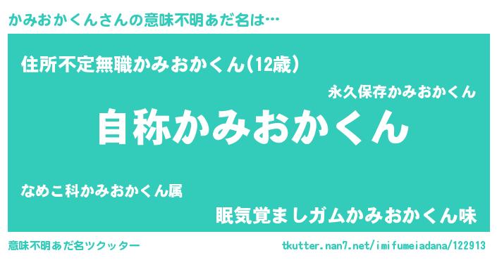 | 女子向けラノベタイトル風あだ名 | 『かみおかくんなんてお断りですっ。』 |