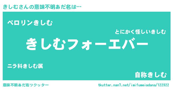 | 男性向けラノベタイトル風あだ名 | 『きしむに滅ぼされるだけの簡単なお仕事です』 |