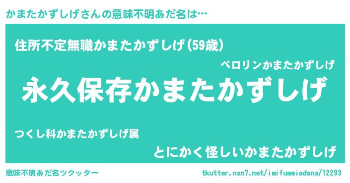 | 男性向けラノベタイトル風あだ名 | 『かまたかずしげという概念が存在しない退屈な世界 』 |